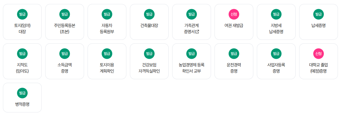 | 모바일 증명서 | 발급 후 스마트폰에 저장 | 종이 증명서 대체 가능 |