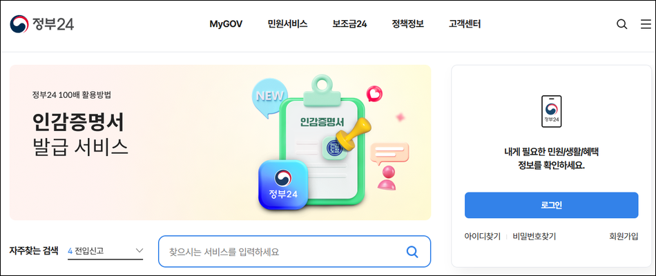 정부24시 홈페이지