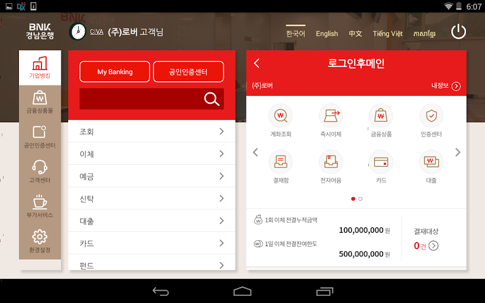 경남은행 기업고객을 대상으로 스마트폰을 통해 언제 어디서나 이체요청 및 결재가 가능하며 다양한 금융서비스를 편리하게 이용할 수 있습니다.