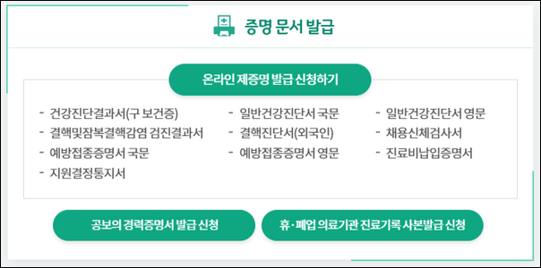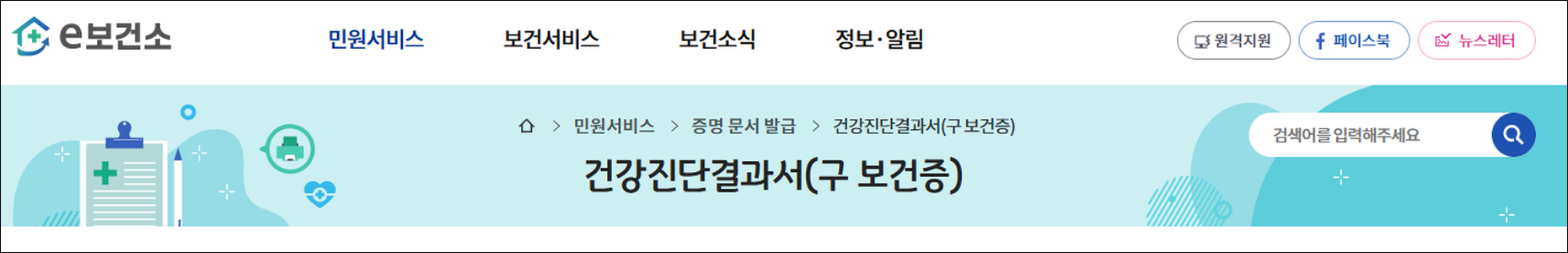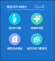 보건복지부와 한국사회보장정보원이 운영하는 온라인민원 서비스,건강진단결과서(구 보건증) 등 제증명 발급, 의료비지원 등 안내