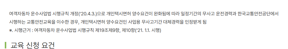 개인택시 양수교육 홈페이지 이용 자격 요건